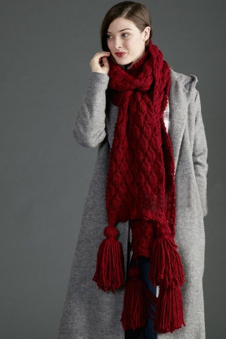 Шарф из толстой пряжи рельефным узором