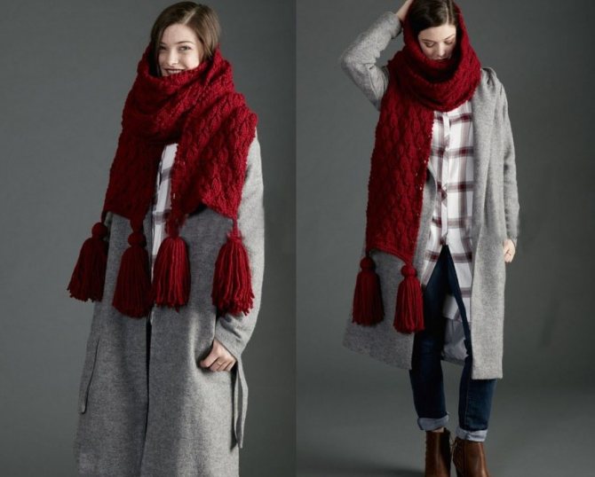 Шарф из толстой пряжи с бахромой
