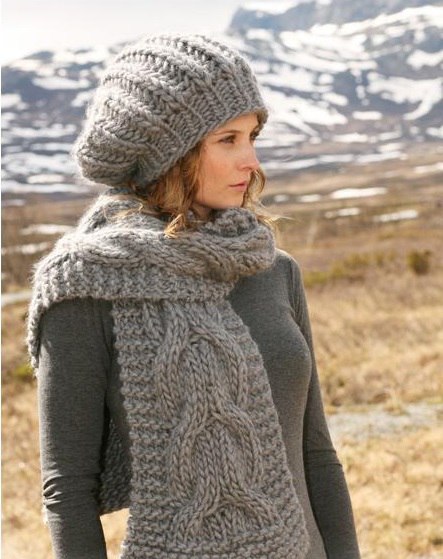 Шарф из толстой пряжи с крупной косой