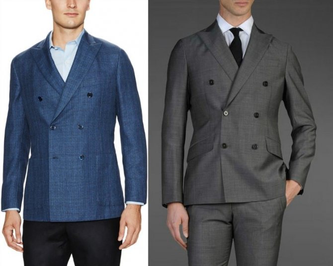 В деловой обстановке данная модель пиджака наиболее предпочтительна, и она отлично подходит мужчинам с высоким ростом. Ряд пуговиц расположен как на одном, так и на другом борту.
