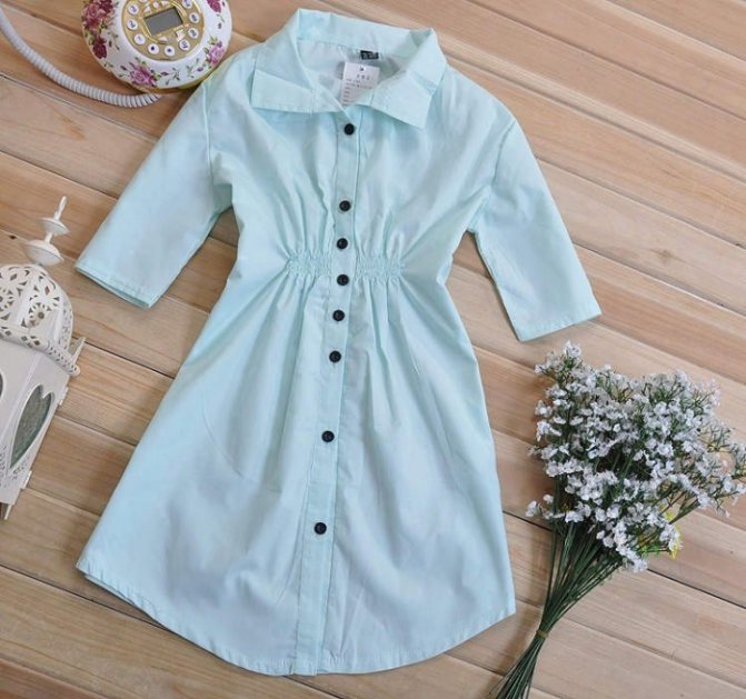 Платье-рубашка. Этот фасон отличается наличием удлиненного, свободного кроя, приталенным силуэтом, пуговками по всей длине. Женская рубашка платье всегда носит мужской воротник. Длина подола, его форма, рукава, цвет, ткань – всегда переменные показатели.