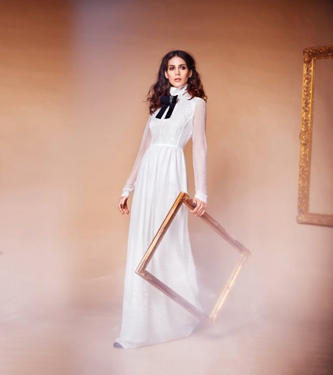 Деталь прекрасно смотрится на длинных моделях до пола. Альтернативой ему служит воротник-хомут.