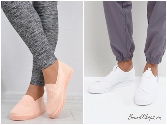 Спортивные слипоны отличаются однотонными расцветками и удобством подошвы. Их можно носить во время активного отдыха или просто на пешие прогулки.