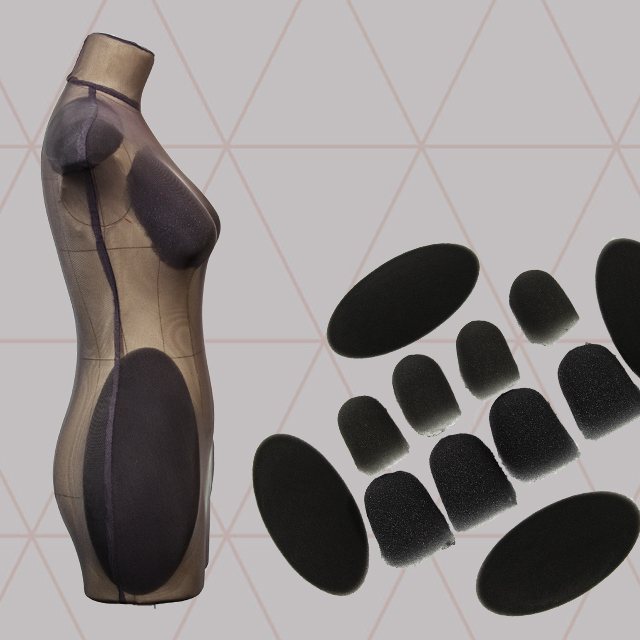 Серьезные модельеры закупают для своих ателье мягкие манекены из пенополиуретана, причем полный размерный ряд. Несмотря на это, параметры все равно приходится корректировать с учетом фигуры клиента. ДЛя комфортной работы мы создали большой комплект накладок для коррекции фигуры манекена Royal Dress forms. В набор входят: