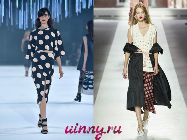 Уже несколько сезонов подряд стилисты рекомендуют не ограничиваться одним принтом и миксовать между собой на первый взгляд казалось бы абсолютно несочетаемые вещи. В этом сезоне дизайнеры предлагают включать одежду с гороховым принтом в необычные сочетания, например, носить горох в дуэте с шотландской клеткой или с цветочным принтом. Как универсальный принт клетка способна поддержать практически любую тенденцию, поэтому инфантильная блуза в черно-белой гамме в сочетании с яркой клеткой раскроется совершенно по-новому. Стоит признать, что если не ограничивать полет фантазии, то порой получаются вполне удачные сочетания.