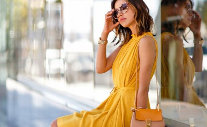 Горчичное платье выглядит необычно и привлекательно. Его Вы можете надеть на вечеринку, на работу, на встречу в кафе. Давайте разберемся, как правильно носить платье горчичного цвета и чем лучше его дополнить.