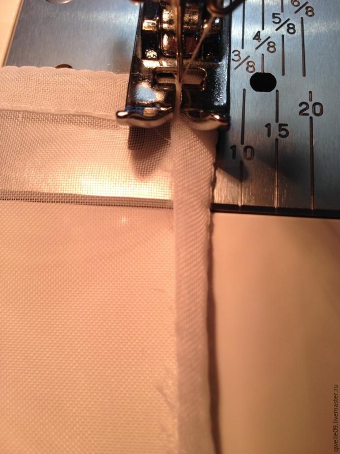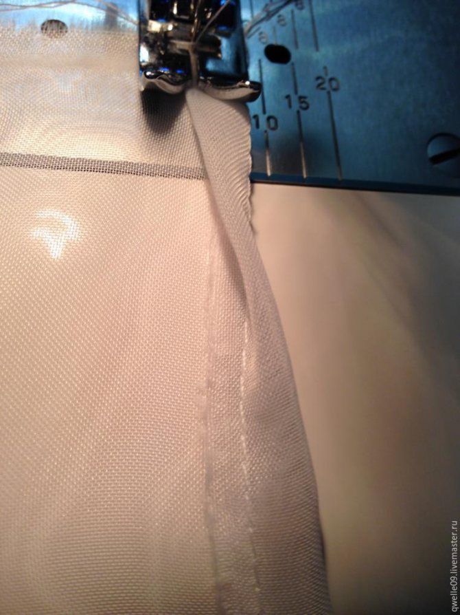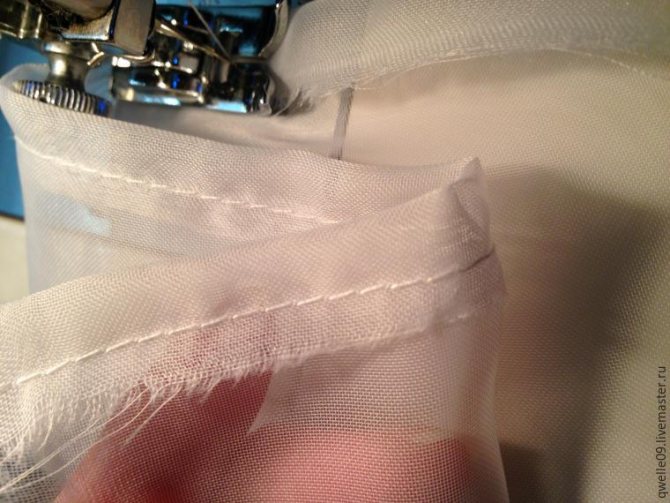 Совет: перед тем как приступить к окантовке тюля данным способом, лучше потренироваться на небольшом отрезке ткани.