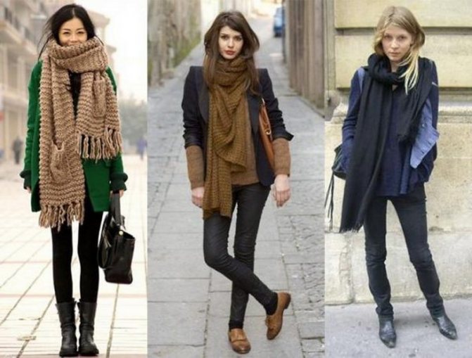 Вязаные шарфы хорошо смотрятся с короткими моделями пальто, а объемные – к удлиненному силуэту.