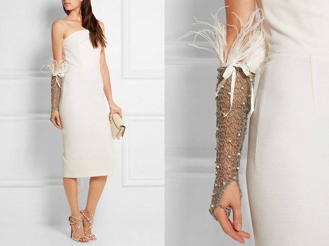 Дизайнеры создают перчатки самой разнообразной длины, но при выборе надо учитывать несколько нюансов. Прежде всего, не стоит выбирать длинные перчатки чуть ниже локтя тем невестам с пышными формами – это только подчеркнет полноту рук и сделает их визуально короче. Зато такая длина идеальна для платьев с коротким рукавом.