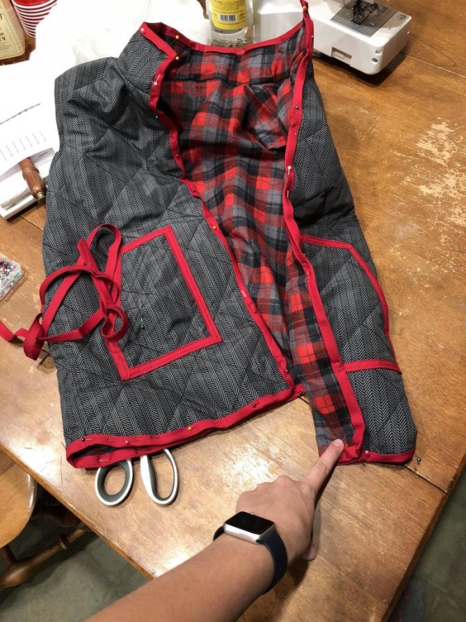 - Далее нужно зашить отверстия в подкладке жилета, что можно сделать только вручную.