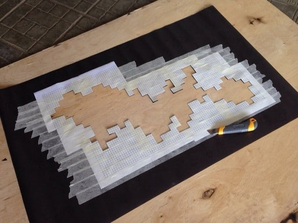 - обкладывают пятна газетами, придавая линиям плавность, также подклеивают их скотчем;