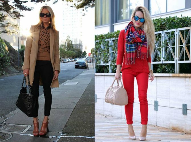 Уменьшить эффект укороченных ног помогут модели на высоком ходу. В холодное время года узкие брюки отлично смотрятся с ботильонами или закрытыми туфлями. Обращайте внимание на то, чтобы край брючин слегка прикрывал верх обуви. Если штанины окажутся короче, то надевайте на ноги красивые носки или гольфы из натурального хлопка.