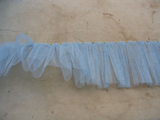 Для того, чтобы потом вставить обруч для большей упругости два слоя юбки-пачки нашивают на кусок сетки.