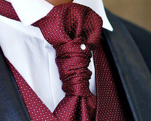 - Можно подобрать галстук под цвет к другой одежде или аксессуарам жениха. Например, под платок в кармане пиджака, брошь или жилет. Зачастую такие сочетания смотрятся очень стильно.