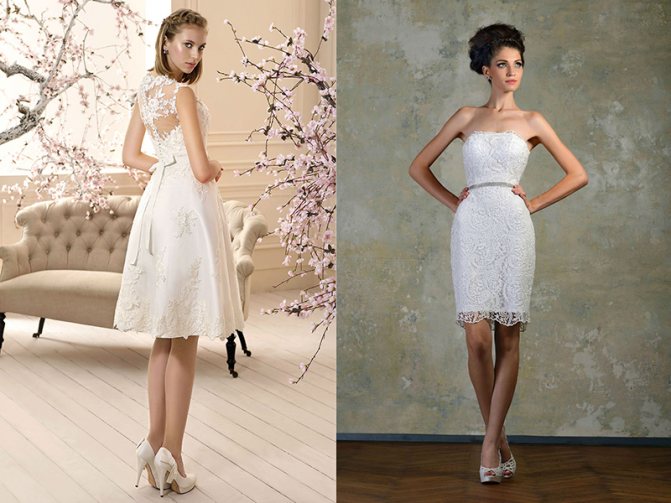 Рассматриваемые модели отличное решение для девушек, мечтающих выглядеть в свой свадебный день настоящей принцессой, но которые по каким-то причинам, не хотят надевать длинный наряд.
