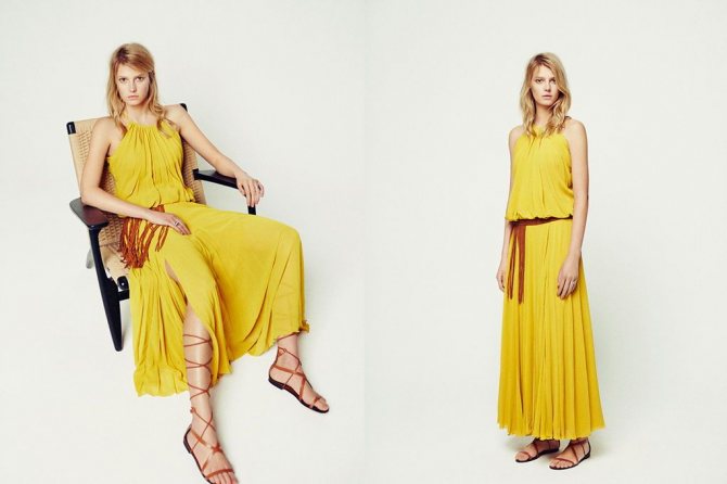 В этом вопросе лучше ориентироваться на ткань, из которой пошито платье. Если материал летящий, струящийся, то выбирайте открытые модели туфель или босоножек. Обратите внимание на модные босоножки с ремешком вокруг щиколотки или стильные туфли с открытыми пальчиками.