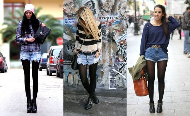 В любое время года, за исключением чрезмерно сильных морозов, на улицах мегаполисов можно встретить девушек, одетых в джинсовые шорты с колготками. Фото различных луков с подобными нарядами отличаются продуманностью деталей в сочетании с некоторой небрежностью.