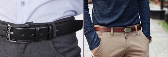 - Классические — как правило, выполнены из кожи. Цвета сдержанные: черный или коричневый. Пряжка неброская, прямоугольная;