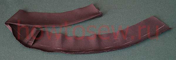 Шаг 4. Заутюживаем припуски на сторону обтачки и притачиваем их к обтачке прямой строчкой (как в шаге 4 юбки на кокетке) на 0,2см от шва притачивания обтачки.