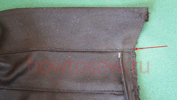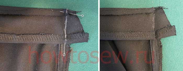 Обработка верхнего среза юбки с потайной молнией без кокетки подкройной обтачкой
