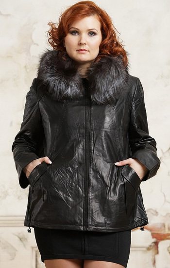 Куртки из кожи. Кожаная куртка для полной женщины — явный фаворит среди большого ассортимента верхней одежды. Существует огромный выбор интересных дизайнерских решений для правильных силуэтов. Это и модели с декоративными элементами — заклепками, цепями, и вставками, и косой воротник-гранж. Хороша комбинация трикотажа и вставок из кожи. Подобные новинки можно увидеть в тандеме с бахромой, натуральным или экомехом, а также яркими аппликациями.