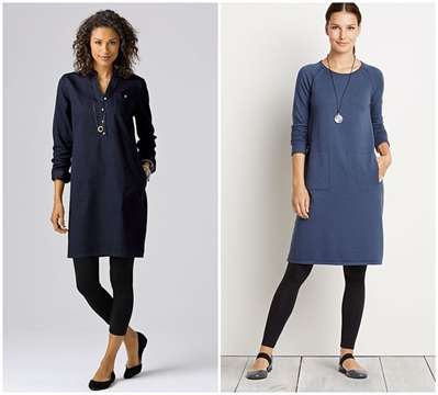 Теплое короткое платье с рукавом можно носить зимой в виде туники, одевая к нему темные монохромные леггинсы или узкие брюки.