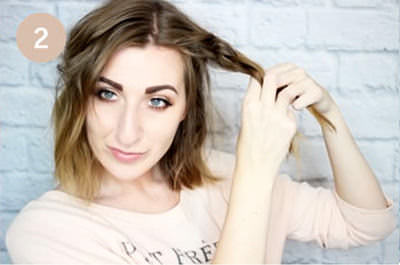 Далее необходимо сделать косой пробор и у лица завить две объемные пряди. Готовую прядь необходимо зафиксировать зажимом. Далее завивается 3 пряди сверху и столько же сзади. После того, как пряди естественным образом спадут их необходимо немного расчесать и зафиксировать лаком.