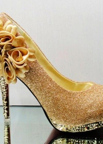 Следует отметить, что золотые туфли не надевают каждый день, поскольку на этом изделии сразу заметны различные повреждения (если, конечно, вы не передвигаетесь п огороду исключительно в автомобиле или такси). Это модель для особенных случаев.