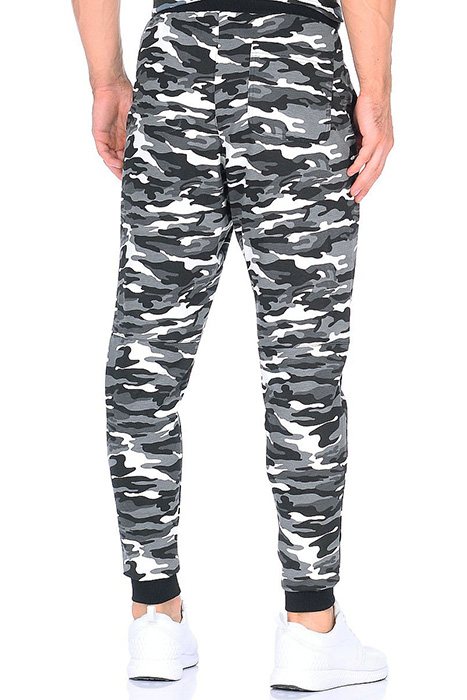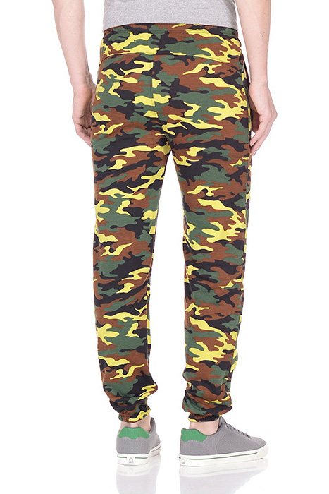 Камуфляжный низ на резинке шикарно выглядит совместно со спортивной футболкой, туфлями, большими солнцезащитными очками. Добавить нотку хулиганства помогут камуфляжные узоры. Кеды, шляпка могут быть в едином цвете. Однотонная майка, ботинки на шнуровке с массивным каблуком выглядят оригинально в сочетании с зауженными штанами.