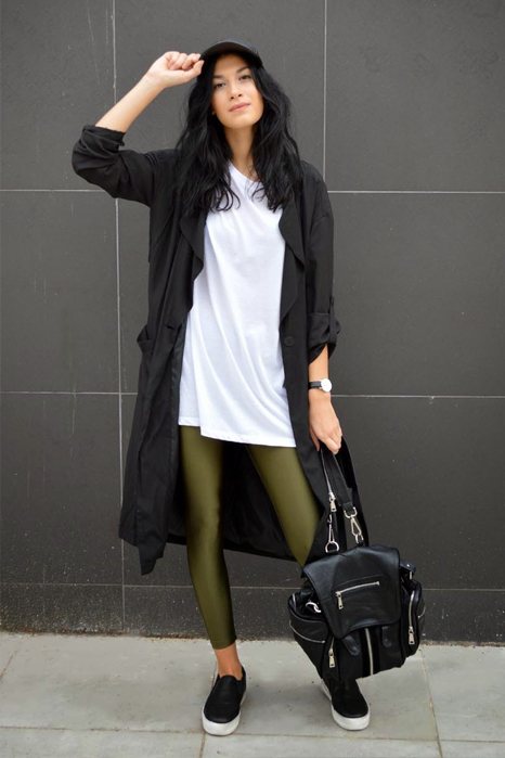 Черная мантия, несмотря на свой сдержанный и спокойный цвет, является предметом гардероба достаточно ярким. С ней можно создавать очень много необычных комбинаций. Проще всего сочетать мантию с джинсами или брюками и трикотажной футболкой. Обуть можно удобные балетки, туфли или кроссовки. В итоге получается комфортный повседневный лук.