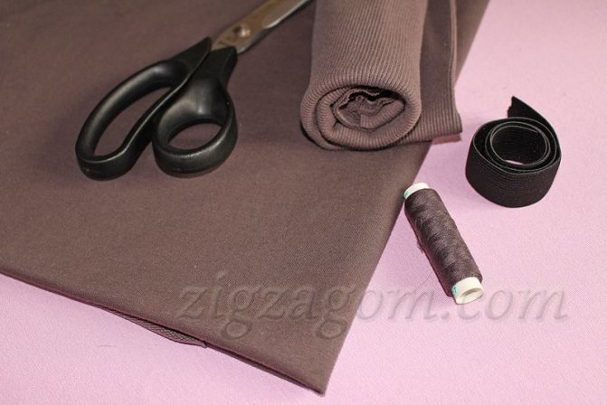 — футер шириной 1,8 м и длиной, равной длине брюк в готовом виде плюс 5 см; — подвяз в тон основной ткани для пояса длиной 10 см и шириной 0,8-1 м; — нитки в тон ткани; — резинка шириной 2,5-3 см; — ножницы, линейка, кусочек мыла, булавки.