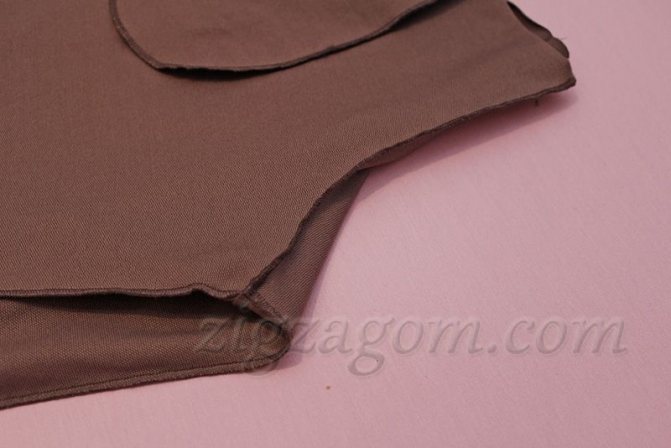 Также по долевой нити выкраиваем для каждого кармана из основной ткани подкройной бочок, из подкладочной ткани мешковину кармана, поперечную полоску подвяза шириной 3 см для обтачки кармана. Мешковину можно выкроить и из основной ткани, если под руками не оказалось подкладки. Затем обтачку для кармана складываем вдвое вдоль и отпариваем, придавая ей полукруглую форму кармана.