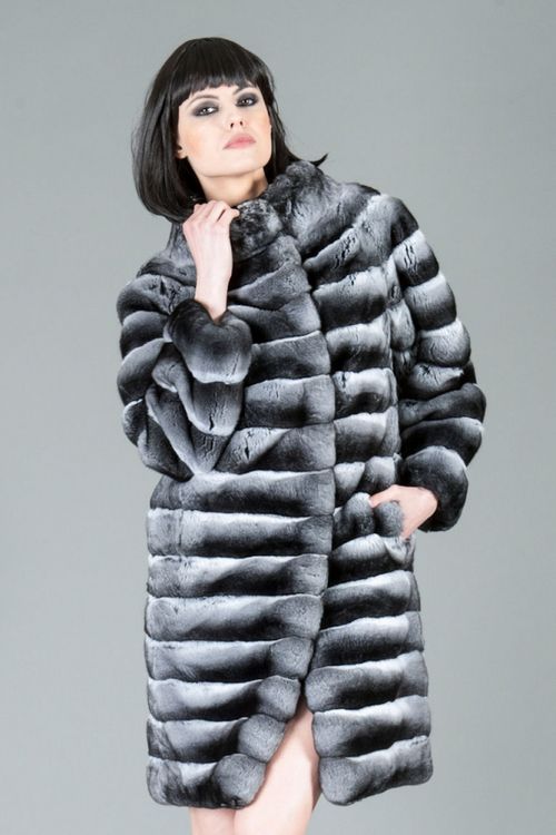 - Последнее явное преимущество шуб из шиншиллы в том, что шкурка грызуна имеет оригинальный трехцветный окрас. Оттенки плавно переходят от темного или серо-голобуго до белого. Например, шуба из шиншиллы на фото выполнена именно в таком виде.