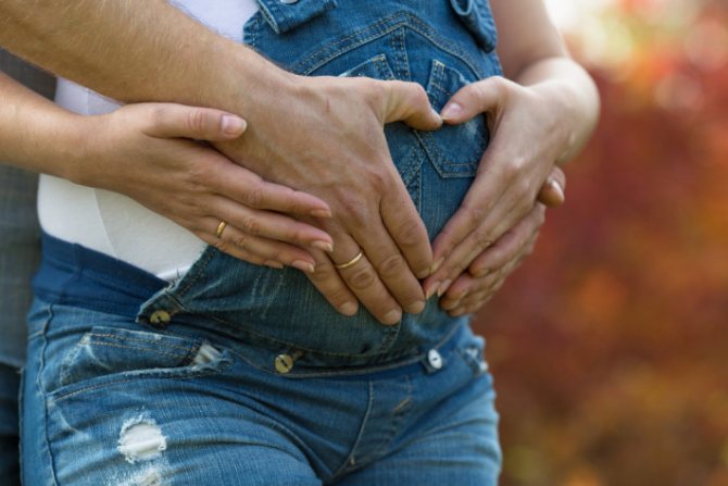 Если покупка состоялась на 4-5 месяцах беременности, то брать одежду на размер больше не нужно. К таким манипуляциям стоит прибегать, если 2-й и 3-й триместры беременности приходятся на холодную пору года. То есть, женщине придется носить комбинезон не на голое тело или белье, а надевать под них теплые и толстые колготки, свитер и утепляться другими вещами.