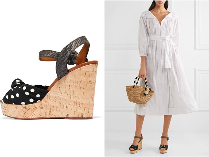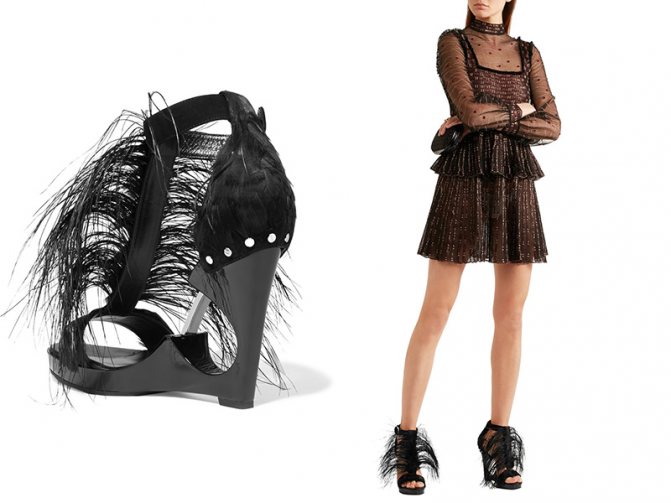 Если верхняя часть обуви украшена броским декором, то танкетка должна оставаться гладкой и наоборот.
