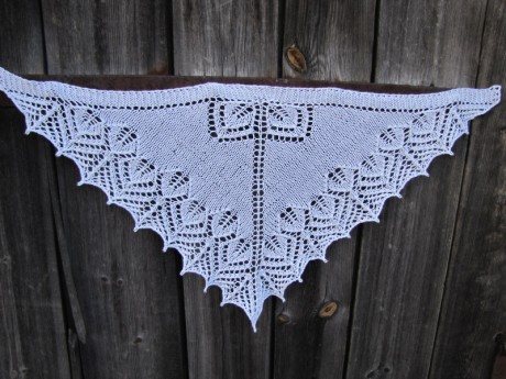 Эта необычная шаль или косынка связана спицами № 5,5. Плотность вязания: 14 п .х 22 р.=10х10 см.