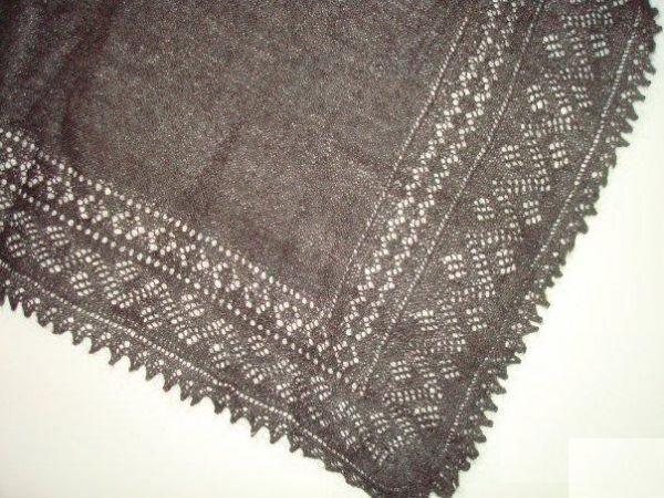 Вязка ажурного платка почти ничем не отличается от вязки плотного, шаги те же: вяжется треугольник (начинать нужно сверху!), а узор создаётся благодаря тому, что в каждом ряду по бокам убирается по петле. Здесь требуется наибольшая сноровка, так как в самом низу вывязывать узор будет гораздо сложнее.