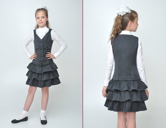 При подборе школьной формы нужно помнить об общепринятых указаниях. Школьный сарафан должен быть темного оттенка, без ярких или блестящих элементов. Традиционными тонами для такой одежды будут: серый — этот оттенок очень дружелюбный и хорошо комбинируется с другими цветами.