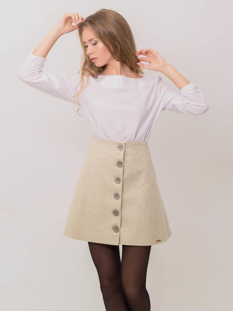 Трапеция с пуговицами подходит для создания разных образов, поэтому изделие и пользуется большой популярностью.