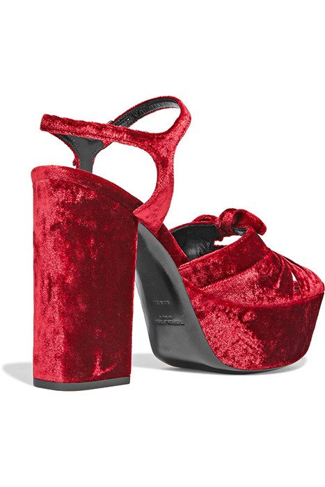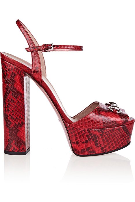 Попробуйте примерить красные босоножки на толстом каблуке. Такие модели менее изящны, чем шпильки, но обувь выглядит столь же элегантно. Толстый высокий каблук более удобен в носке, особенно в том случае, если он совмещен с платформой, расположенной в подпальцевой зоне.