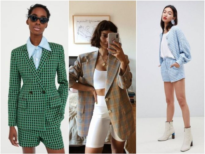 В этом сезоне по-прежнему популярны брючные костюмы в клетку самых разных цветов. Более сдержанные — для офиса, более яркие — для прогулки, отдыха или деловой неформальной встречи.